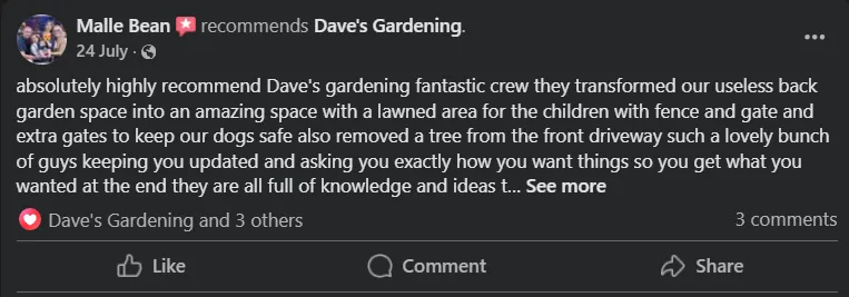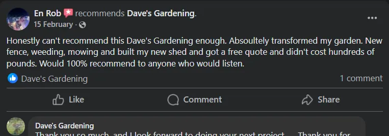 Definitely. We offer flexible maintenance plans - weekly, fortnightly, or monthly - to keep your garden looking great all year round. Whether it’s mowing, weeding, trimming, or general upkeep, we’ll tailor a plan that suits you.